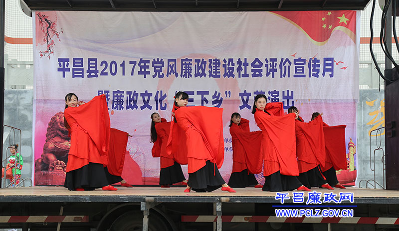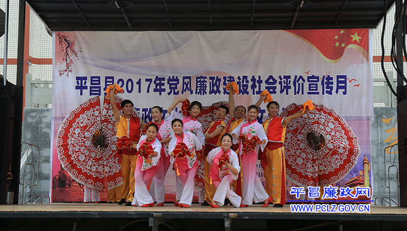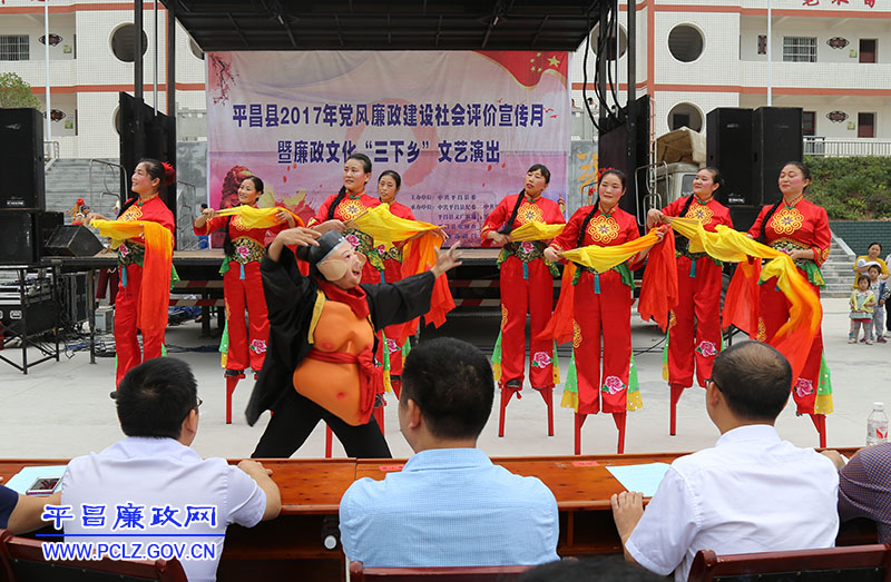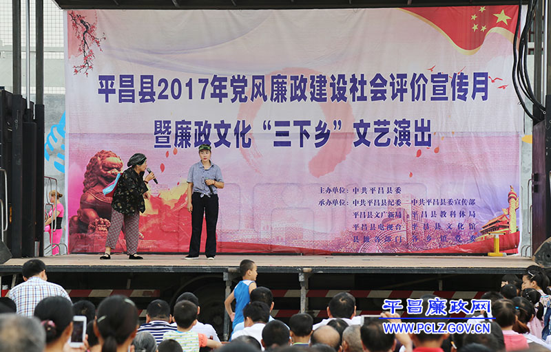 9月16日,由中共平昌县委主办,县纪委、县委宣传部、笔山镇党委等部门承办的平昌县2017年党风廉政建设社会评价宣传月暨廉政文化“三下乡”文艺演出活动走进笔山镇。给笔山镇党员干部和群众送去一顿廉政文化大餐,近2000余名党员群众观看。 文艺演出以群众喜闻乐见的舞蹈、歌曲、小品等方式展出,节目中穿插有党风廉政知识有奖问答,寓教于乐,精彩纷呈,迎得观众阵阵掌声。同时还组织县级相关涉农部门20余个,全程参与开展政策宣讲、接受咨询、现场接访、免费义诊等活动。