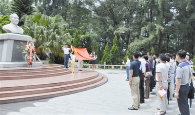 6月30日,福建省漳州市纪委启动“学谷公、传家风、促党风”活动暨党员干部好家风建设活动。图为市纪委监察局机关干部在谷文昌塑像前宣誓。杨特团 摄
