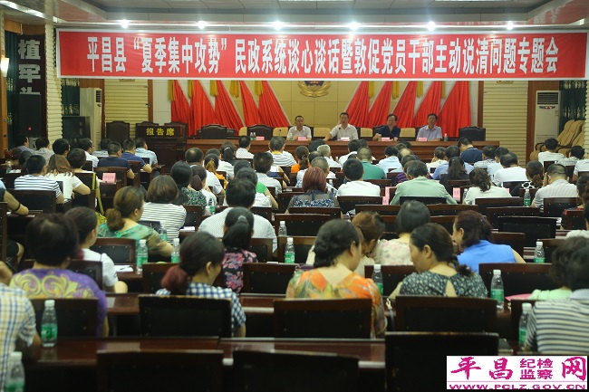 7月26日,平昌县举行“夏季集中攻势”民政系统谈心谈话暨敦促党员干部主动说清问题专题会。县纪委副书记冯建明参加会议并讲话。各乡镇(街道办事处、管委会)民政工作人员、县民政局全体干部职工参加会议。