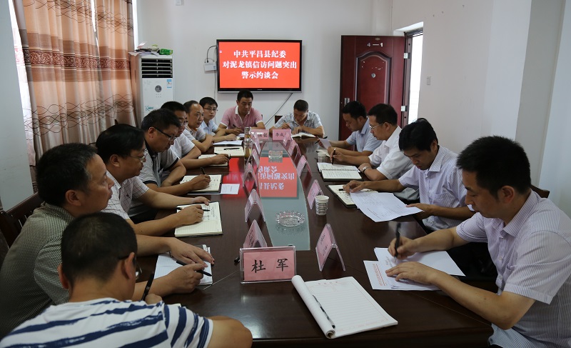 8月3日,县纪委副书记冯建明、县纪委常委何川平一行深入泥龙镇,就近期泥龙镇信访问题突出对其党委班子成员进行警示约谈。