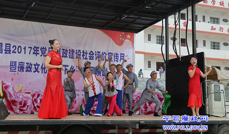 9月16日,由中共平昌县委主办,县纪委、县委宣传部、笔山镇党委等部门承办的平昌县2017年党风廉政建设社会评价宣传月暨廉政文化“三下乡”文艺演出活动走进笔山镇。给笔山镇党员干部和群众送去一顿廉政文化大餐,近2000余名党员群众观看。 文艺演出以群众喜闻乐见的舞蹈、歌曲、小品等方式展出,节目中穿插有党风廉政知识有奖问答,寓教于乐,精彩纷呈,迎得观众阵阵掌声。同时还组织县级相关涉农部门20余个,全程参与开展政策宣讲、接受咨询、现场接访、免费义诊等活动。